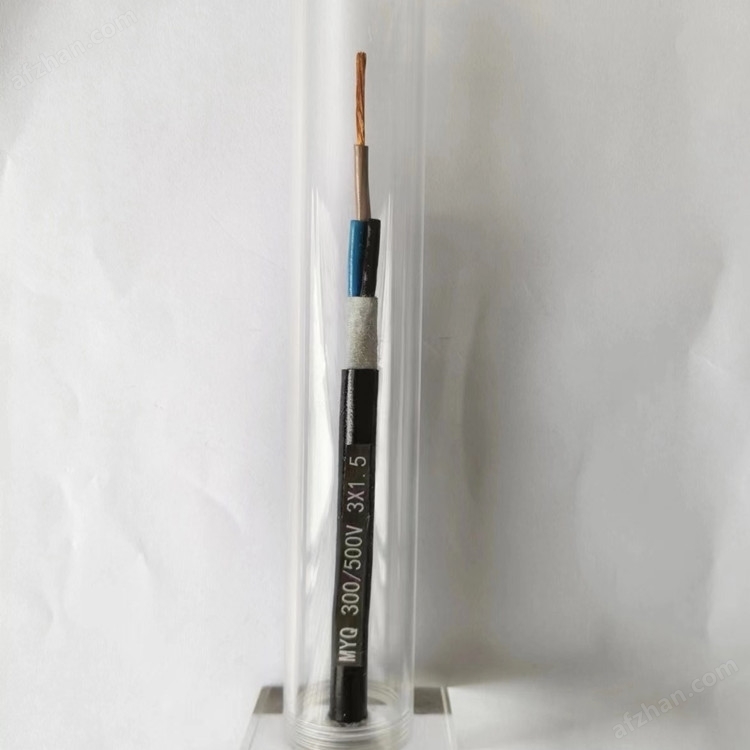 3.MYQ型电缆有2~12根主线芯组成,成缆后外面挤包黑色氯化聚乙烯橡皮护套或黑色氯丁橡皮护套。